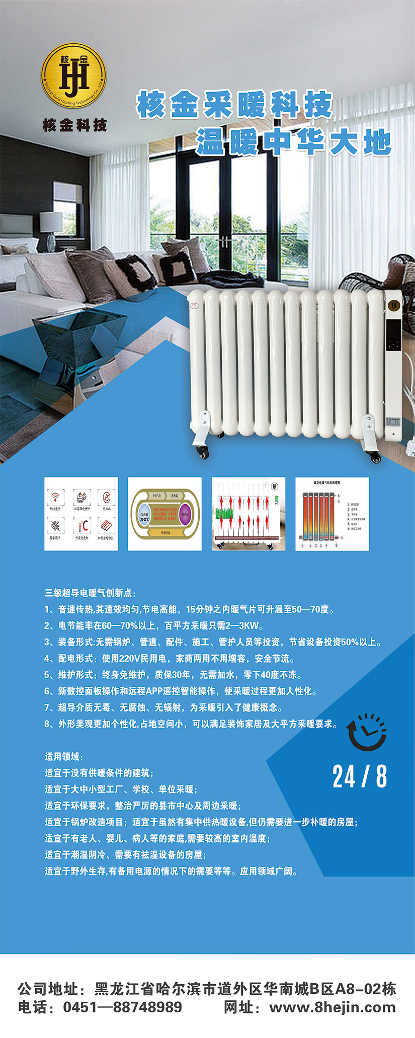 8、外形美观更加个性化,占地空间小,可以满足装饰家居及大平方采暖要求。