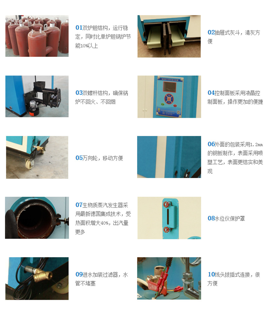 1、安全性高,配置优质压力控制器、安全阀,设有超压、低水位和过热保护等多重保护。